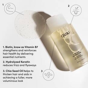 - Shampoo OUAI Fine - Cansado de dizer “estou bem”? Nós também. Este shampoo colorido dá vida a cabelos finos e lisos com queratina fortalecedora, biotina e óleo nutritivo de semente de chia. O cabelo fica limpo, elástico e cheio de volume, para que você possa finalmente ficar bem.