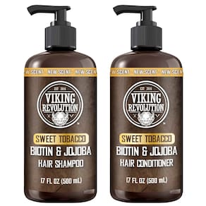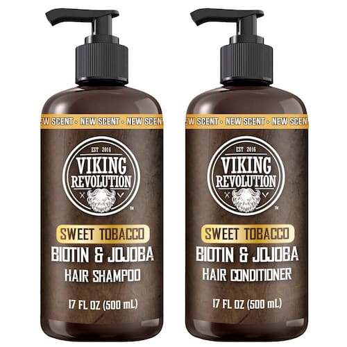 Conjunto de xampu e condicionador masculino Viking Revolution Sweet Tobacco com biotina e óleo de jojoba - Xampu e condicionador de cabelo naturais para homens com vitamina B5 - Shampoo masculino para cabelos finos (17 onças)