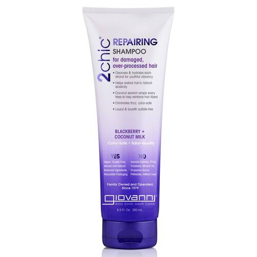 Limpeza profunda - Adequado para para todos os tipos de cabelo, o shampoo reparador GIOVANNI 2chic deixa o cabelo com uma forte combinação de nutrição e reposição, ao mesmo tempo que elimina o frizz — COLOR SAFE - O shampoo ultra-reparador GIOVANNI 2chic é 100% seguro para a cor e nutre o cabelo com uma mistura exclusiva de vitaminas, antioxidantes e ácidos graxos ômega sem remover a cor