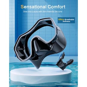 Equipamento de mergulho para adultos - ?Design antirespingos de cano seco?O conjunto de snorkel adulto instala uma válvula de inalação unidirecional e tem uma bola flutuante móvel na parte superior. Quando o tubo estiver debaixo d'água, a entrada do tubo será fechada pela bola flutuante, esteja você nadando ou mergulhando, você pode lidar com isso facilmente. - ?Lentes antiembaçamento fornecem visão clara?A máscara de mergulho e os espelhos de snorkel são equipados com filme antiembaçamento para evitar embaçamento dentro da lente quando o nariz expira. Agora você pode desfrutar de todas as paisagens subaquáticas claramente. - ?Material de grau alimentício é seguro e não tóxico?O conjunto de mergulho e seu bocal são feitos de silicone de alta qualidade de grau alimentício, não tóxico e inodoro, unissex e seguro para crianças. - ?Proteção ocular segura?A superfície espelhada da máscara de mergulho é feita de vidro temperado, que é forte e antiembaçante e pode proteger seus olhos com segurança. É a melhor escolha para nadar. - ?Confortável de usar e impermeável?A máscara de mergulho é projetada com tecnologia de molde de vedação facial de silicone canelado macio. Adapta-se ao rosto da maioria das pessoas, a alça ajustável permite um ajuste perfeito ao rosto quando usada. Vedação à prova d'água.