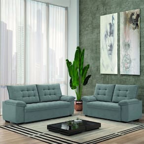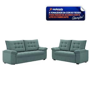 O Conjunto de Sofá 2 e 3 Lugares Bertioga, é a escolha perfeita para acomodar amigos e familiares, seu design sofisticado combina com qualquer ambiente. Produzido com materiais de ótima qualidade, revestido em tecido veludo de toque macio e braços almofadados que garantem mais aconchego. As almofadas são soltas e o produto tem percintas elásticas, garantindo apoio, elasticidade e conforto. Este modelo é ideal para que você possa aproveitar seus momentos de lazer e descanso.
