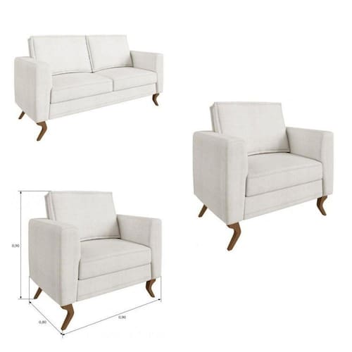 Esse conjunto é composto por 1 sofá de 2 lugares e 2 poltronas.