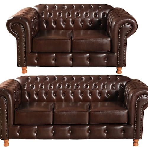 • Não nos responsabilizamos por montagem e desmontagem, transporte por escadas, elevadores, guincho. Acompanha Almofadas extras: Não Almofada do assento: Removível Almofada do encosto: Não Possui Altura do assento até o chão: 0 cm Altura do Encosto: 80 cm Ambiente Principal: Sala de Estar Complexidade da Montagem: Baixa: pode ser montado por uma pessoa sozinha Cor: Café Cor do Produto: Café Densidade do Assento: D-26 Enchimento do Assento: Espuma Estilo de Braço: Braços Redondos Firmeza do Assento: Macio Informações Complementares: 120Kg por acento Itens Inclusos: 1 Sofá 3 Lugares Luis XV + 1 Namoradeira 2 Lugares Luis XV + Pés Linha ou Coleção: Chesterfield Material dos Pés: Madeira Eucalípto Necessita Montagem: Sim Origem do Produto: Nacional Peso: 70 kg Pet Friendly: Não Possui Percintas Elásticas: Sim Possui Pés: 04 Possui Rodízio: Não Recomendações de Uso, Manutenção e Limpeza: Limpeza e cuidados: pode ser utilizado aspirador de pó, escova com cerdas macias ou limpeza a seco. Não utilizar produtos químicos, abrasivos ou limpeza a vapor. Evitar exposição prolongada ao sol. Sistema de Montagem: Enroscar os Pés Suporta Até (kg): 120 kg Tecido Predominante: Couro Sintético Tipo de Encosto: Fixo Tipo de Mola: Molas Ensacadas (Molas ensacadas)