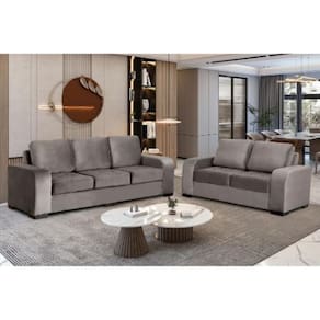 Os pés plásticos são discretos e funcionais, proporcionando estabilidade adicional e facilidade de movimentação para a limpeza do ambiente. As dimensões generosas deste conjunto também são notáveis: o sofá de 2 lugares possui 90cm de largura, 163cm de comprimento e 90cm de altura, enquanto o sofá de 3 lugares mede 90cm de largura, 223cm de comprimento e 90cm de altura, oferecendo espaço amplo para acomodar confortavelmente sua família e amigos.