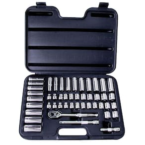 - Fraccionário e métrico; catraca de 9,5 mm (3/8"), extensões de 7,6 cm e 15,2 cm (3/8")
