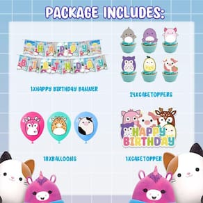 - Os suprimentos para festas incluem: banner longo x 1, cartão grande inserido em bolo x 1, bobina x 1, lindos cartões inseridos em muffin x 24, balões coloridos x 16. Qualidade premium: cartões de PVC de alta qualidade e balões de látex. Seguro de usar, não tóxico e inodoro. Padrões adoráveis e cores brilhantes, impressão mecânica avançada