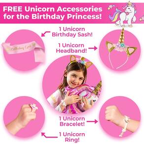 ? A SOLUÇÃO PERFEITA PARA FESTAS MÁGICAS: Ao contrário de outros pacotes que cobrem apenas utensílios de mesa ou decorações, este conjunto de suprimentos para festas de aniversário de unicórnios combina lindas decorações para festas de unicórnios e lindos suprimentos para festas de unicórnios. Também inclui acessórios de unicórnio S para a princesa aniversariante: 1 pulseira de unicórnio, 1 anel de unicórnio e uma faixa de aniversário. Tudo o que você precisa em apenas um conjunto completo de festas para tornar a festa de aniversário do seu pequeno fã de unicórnio um grande sucesso com o mínimo de barulho.