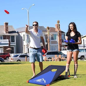 O jogo Cornhole, um amado jogo ao ar livre, oferece entretenimento simples, mas emocionante para jogadores de todas as idades. Configure duas tábuas de madeira inclinadas espaçadas, cada uma com um orifício na parte superior central. Os jogadores se revezam jogando pufes em direção ao tabuleiro oposto, visando o buraco ou pousando no tabuleiro para pontos. Com suas regras fáceis de entender e brincadeiras personalizáveis, a cornhole é perfeita para reuniões no quintal, viagens à praia e festas traseiras. Este jogo atemporal promove competição amigável, risadas e memórias queridas, tornando-o uma tradição querida para familiares e amigos.