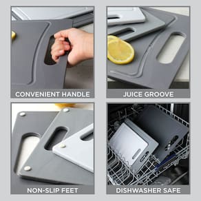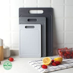 - OPÇÕES DE TAMANHOS DIFERENTES - De fatiar carne a picar uvas, este conjunto de tábuas de corte de plástico vem com uma tábua de tamanho excelente para suas necessidades de cozinha. As maiores medidas: 14", médio: 12" e pequeno: 9,5".