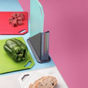 Detalhes do produto: - Tábuas de polipropileno com proteção antimicrobiana incorporada no processo de injeção que dura por toda vida útil do produto, inibindo o crescimento de bactérias e fungos; - Cada tábua possui indicação do tipo de alimento que deveria ser , reduzindo assim a contaminação entre os tipos de alimentos; - São mais duráveis, fáceis de limpar e preservam a beleza e a praticidade no dia a dia; - Suporte de ABS que proporciona organização para a sua cozinha; - Podem ir à máquina de lavar louças facilitando seu dia a dia.