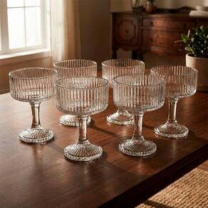 O Jogo de Taças de Sobremesa Latinos da Casambiente é produzido em vidro, com desenhos em relevo listrados para você servir deliciosas sobremesas com mais praticidade e requinte. Seu design minimalista, atemporal e elegante permite composições com outros itens em sua mesa ou cristaleira.