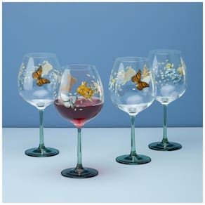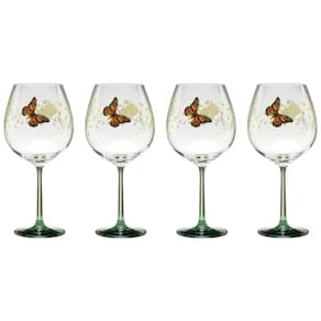 As taças de vinho de balão Butterfly Meadow apresentam um design exclusivo e encantador, com borboletas e abelhas animadas sobre uma folhagem vibrante. As flores elegantes completam o visual, transformando qualquer evento em uma verdadeira festa no jardim. Feitas de vidro cristal, essas taças são laváveis na máquina de lavar louça e vêm em um conjunto de 4. Cada taça mede 7 cm de diâmetro por 24 cm de altura. Este produto é importado e traz um toque especial para suas celebrações!