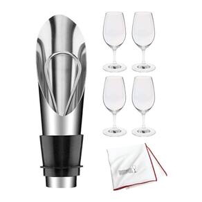 Este conjunto inclui quatro taças, ideais para compartilhar momentos especiais com amigos ou família. Complementando as taças, há um dosador de vinho em aço inoxidável que facilita uma dosagem suave e precisa, evitando derramamentos e gotejamentos. Além disso, o pano de polimento incluso ajuda a manter suas taças limpas e brilhantes, preservando sua condição impecável ao longo do tempo.