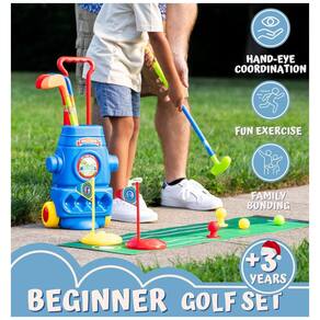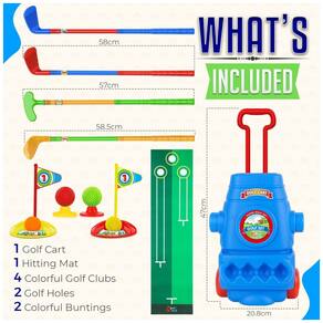 CONJUNTO DE GOLFE INICIANTE COMPLETO O ToyVelt Mini Golf Set inclui um prático carrinho de golfe com 2 rodas, 4 tacos de golfe coloridos de diferentes formas e tamanhos, 6 bolas especiais, um tapete de putting e 2 buracos de treino. FEITO PARA CRIANÇAS E CRIANÇAS Este kit de brinquedos de golfe apresenta bastões de golfe extra leves e acessórios feitos de materiais não tóxicos, o brinquedo mais que você poderia dar aos seus filhos. EXPERIÊNCIA REAL DE GOLFE Seja em ambientes fechados ou ao ar livre, este conjunto de golfe infantil oferece uma jogabilidade excelente, pois apresenta aos seus filhos um esporte realista, desafiador e divertido. UM BRINQUEDO DE APRENDIZAGEM IDEAL Mais do que apenas a diversão que traz, este brinquedo de golfe se concentra em ajudar a promover o desenvolvimento físico e mental das crianças, concentração, paciência e boas maneiras Marca: Não Informado
