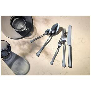 Conteúdo do Conjunto: 6 garfos de mesa, 6 facas de mesa, 6 colheres de mesa, 6 garfos para bolo, 6 colheres de chá, café