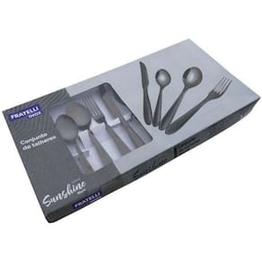 - Conteúdo: 6 garfos de mesa, 6 facas de churrasco, 6 colheres de mesa, 6 colheres de chá