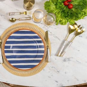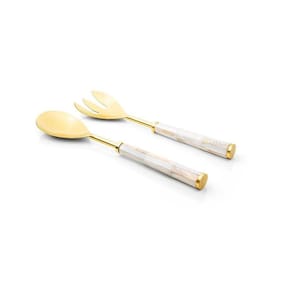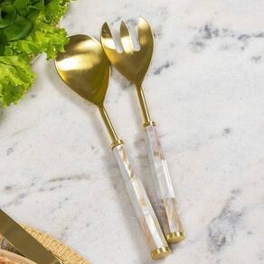 Conjunto De Talheres Copa E Cia Para Salada 2 Peças Garbo Atenas Conjunto de Talheres Copa e Cia para Salada 2 Peças Garbo Atenas - Características Gerais do Produto: - Composição: Composição por linha de talheres:; Rattan: em aço inoxidável gold com cabo de rattan natural.; Atenas: em aço inoxidável gold com cabo de madrepérola.; Monza: em aço inoxidável silver com cabo de resina.; Goldwood: em aço inoxidável gold com cabo de madeira.; Turim: em aço inoxidável gold com cabo de resina.; Ilhéus: em aço inoxidável com cabo de resina.; Bamboo: em aço inoxidável silver com cabo de bambu natural escuro.; Rattan Natural: em aço inoxidável silver com cabo de rattan. - Detalhes: Design Exclusivo Copa&Cia.; Produzido na Índia.; As cores podem sofrer pequenas alterações de cor, variando de monitor para monitor.; Os objetos que ambientam as fotos não acompanham o produto.; As fotos produzidas são apenas como sugestão de uso com as demais peças da coleção. - Cuidados: Não Armazenar as Peças Todas Juntas, Poderá Provocar Riscos.; Lavar com Detergente Neutro e Esponja Macia.; Não Deixar de Molho.; Lavar Manualmente; Não podem ser colocados em lava-louças.; Não utilizar solventes, abrasivos ou alvejantes. - Dimensões (cm): Dimensão da Embalagem: Altura:4 cm, Largura: 16 cm, Comprimento: 33 cm Acompanha o produto: - 1 Peças de Colher para Servir Salada1 Peça de Garfo para Servir Salada Garantia: - 7 dias/30 dias contra defeito de fabricação