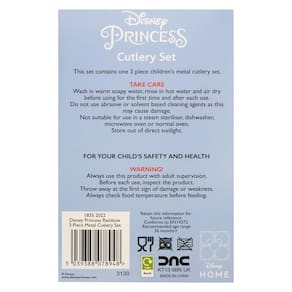 - Conjunto de talheres de princesa oficial da Disney: nosso conjunto de talheres Disney Princess reutilizáveis é perfeito para os pequenos que querem comer como a realeza. O conjunto de garfo, colher e faca é ótimo para o uso diário em casa, para levar aos avós, em viagens de acampamento ou para tirar férias para minimizar a interrupção da rotina nas refeições. Uma garrafa de água, lancheira e conjunto de talheres combinando estão disponíveis como parte de nossa mercadoria oficial da Disney Princess do Reino Unido.