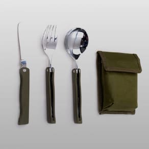 O Conjunto de Talheres Soldier - Echolife é ideal para escoteiros, militares ou quem vai acampar.