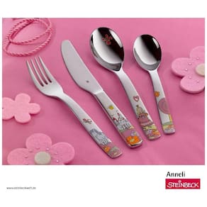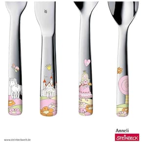 Conteúdo: 1 garfo, faca de mesa, colher e colher pequena. Número do item: 1294156040 Material: Aço inoxidável Cromargan 18, 10 polido. Livre de ferrugem, lavável na máquina de lavar louça, dimensionalmente estável, higiênico, resistente a ácidos e indestrutível. Os motivos coloridos dos talheres são resistentes a arranhões, s para alimentos e coloridos. Para crianças a partir de 3 anos: O conjunto completo de talheres não tem nada a ver com o conjunto completo e é perfeitamente adequado para uma alimentação independente. Tamanho e forma adequados à idade. A prataria infantil é ideal como presente de batismo ou para o nascimento de um filho com gravação pessoal e individual. Como marca alemã, a WMF é conhecida por sua linha versátil e elegante de produtos e pela confiabilidade em qualidade e acabamento. Há mais de 160 anos, a WMF tem tornado a culinária, a refeição e a bebida uma experiência real, ao mesmo tempo em que mantém os padrões profissionais e o progresso das tecnologias de fabricação Marca: Não Informado