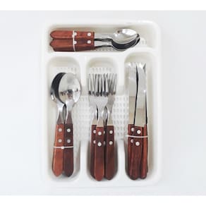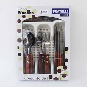 Para o seu churrasco ser de primeira não basta escolher só as carnes que você irá servir. É preciso oferecer talheres que facilitem o momento de apreciação de todos. Com o Conjunto de talheres da linha Wooden 25 peças, será possível cortar e saborear o churrasco. Contém: 06 colheres para sobremesa 16 cm 06 garfos para mesa 19 cm 06 facas para mesa 21 cm 06 colheres para mesa 19 cm 01 suporte para talheres