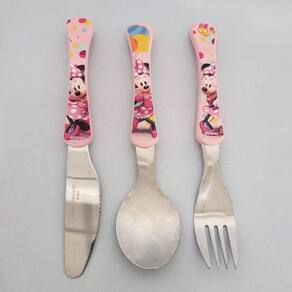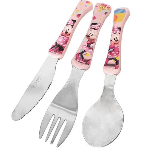Conjunto de Talheres Minnie Rosa 3 Peças Garfo Faca Colher Inox Disney Infantil Simonaggio.
