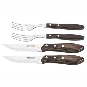Conjunto De Talheres Para Churrasco Em Aço Inox Jumbo 5" Polywood Castanho 4pçs - Tramontina O churrasco é quase tão antigo quanto o próprio Brasil. A arte de assar a carne sobre a brasa começou lá no século 17 quando o país passava pelo Período Colonial. Mais precisamente no Sul, numa região que é conhecida como os Pampas. É lá que moram os gaúchos, os responsáveis por criar o churrasco e deixar todo mundo com água na boca. Antigamente, a carne era preparada em espetos de madeira e, o fogo, feito no chão. Hoje, quem mantém a tradição é a Tramontina, que também nasceu no Sul do Brasil e tem uma linha completa de espetos, grelhas, facas, churrasqueiras e tudo o que você precisa para fazer um verdadeiro churrasco brasileiro. - Lâminas de aço inox; - Cabos de madeira tratada Polywood; - Rebites de aço inox. Orientações Gerais: - SEGURO E ADEQUADO: Antes da primeira utilização, llave bem as peças e seque-as; - Produtos cortantes e perfurantes: tenha cuidado ao manusear e mantenha fora do alcance das crianças; - Para maior durabilidade dos produtos recomenda-se secar bem antes de guardar, mesmo após lavagem em máquina; - Para descarte dos produtos e embalagens siga as orientações de reciclagem vigentes. Conteúdo: 02 Facas de Mesa Jumbo 5; 02 Garfos de Mesa Jumbo. Cor: Madeira Castanha Peso do Produto: 0,31kg Dimensões do Produto (CxLxA): 275x 166x 39mm Fabricante: Tramontina meli_shipping_mode - Sim Fabricante - Tramontina Modelo - 29899/526