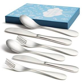 -?Talheres infantis com design seguro?Essas colheres e garfos para crianças são feitos com a máxima segurança da criança e, portanto, todas as bordas são lisas, os garfos têm dentes redondos e a faca de manteiga tem uma lâmina sem corte. Todos esses detalhes são focados para proteger os dedos e a boca das crianças dos cortes. Utensílios infantis de aço inoxidável não podem ser lascados e caídos na comida, como utensílios pintados ou revestidos, e ficam amarelos ou cheiram a silicone