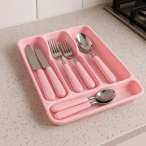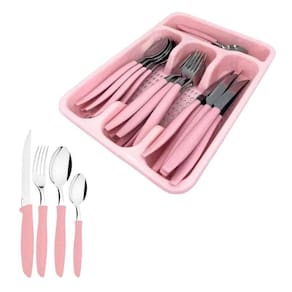 Conjunto de Talheres Rosa 24 Peças Porta Talher com Divisão Conjunto de Talheres Rosa 24 Peças Porta Talher com Divisão ===================================== Com design moderno e cabos na cor rosa, este conjunto oferece praticidade sem abrir mão da elegância, sendo perfeito tanto para uso diário quanto para ocasiões especiais.