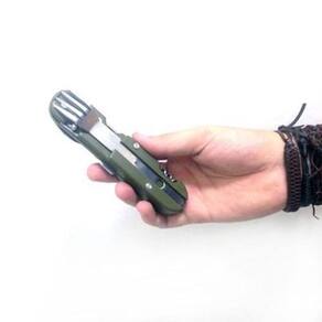 Conjunto de Talheres Timber da Nautika para Camping Tipo: Conjunto de talheres de uso militar, 4x4 e camping Inclui estojo para transporte O estojo vem com passador de cinto e/ou encaixe para cinto multiuso Para realizar a refeição em acampamentos, trilhas ou mesmo para uso militar, um conjunto de talheres prático e compacto é a melhor solução, tanto para o preparo de alimentos quanto para a refeição em si. E a Nautika tem o conjunto perfeito para você: o Conjunto Timber. Compacto e leve, o conjunto Timber possui os itens essenciais para uma refeição completa: um garfo, uma colher, uma faca grande, um abridor de latas e um saca-rolhas. O garfo e a colher são itens independentes, enquanto que a faca é uma espécie de multi-função: de um lado tem a lâmina da faca, do outro um abridor de latas, e na lateral um saca-rolhas. Todos os itens são feitos em aço inox, e a faca possui cabo de plástico ABS texturizado e antiderrapante. Com o sistema de encaixe das peças, nenhum item do conjunto Timber fica de fora do estojo de transporte. O estojo vem com passador de cinto e/ou encaixe para cinto multiuso. Informações gerais: Material: Aço inox com cabo de ABS texturizado e antiderrapante Peso: 190g Dimensões: 10 x 24 x 4cm Marca: NTK Marca: Não Informado