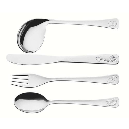 CARACTERÍSTICAS DO JOGO DE TALHERES INFANTIL TRAMONTINA EM AÇO INOX COM DESENHO EM ALTO RELEVO 4 PEÇAS - A linha infantil Baby é a mais tradicional da Tramontina para papais e mamães que buscam produtos com a higiene do aço inox; - Totalmente feitos de aço inox, por isso não soltam nenhum resíduo nos alimentos, mantendo-os saudáveis; - Altamente duráveis mantêm suas características autênticos, preservando a beleza, a higiene e a durabilidade do material; - Talheres com formato ergonômico e com variação de desenhos, especialmente criados para incentivar e auxiliar no desenvolvimento das crianças; - Acabamento em brilho, com desenhos estampados em alto-relevo; - Podem ser lavados diariamente na máquina de lavar louças.
