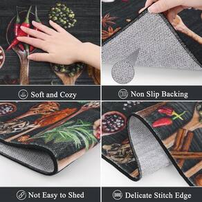 - Tapetes de cozinha macios para chão: o conjunto de tapetes de cozinha é feito de materiais de tecido de poliéster premium. O design usa elementos adoráveis e cores vivas para adicionar elegância a qualquer área da casa. O tapete de cozinha lavável usa um processo de impressão clássico que não desbota ou encolhe, protegendo o chão da sua cozinha de umidade e manchas, mantendo-o seco e limpo