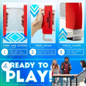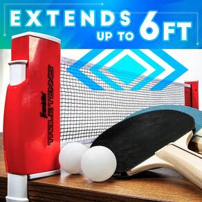 - Qualquer mesa se torna uma mesa de pingue-pongue: use este conjunto como substituto de uma rede de pingue-pongue rasgada ou de bolas ou remos perdidos. Transforme qualquer mesa em um divertido jogo de tênis de mesa e veja quem ganha