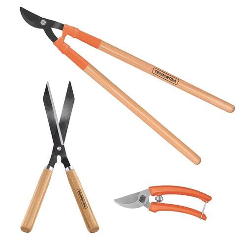 Com o kit de tesouras de poda 3 peças Tramontina fica fácil fazer a manutenção de árvores, arbustos e cerca-viva. Produzidos em lâmina metálica perfeito para corte e acabamento.