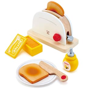 Hape Conjunto de torradeira pop-up de madeira branca, acessórios de café da manhã para crianças em idade pré-escolar