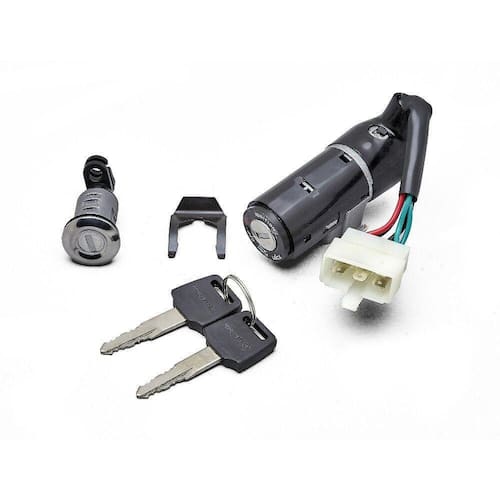 O conjunto de travas tem a função de acionar e/ou destravar, com uma única chave, vários componentes da motocicleta, como: ignição, guidão, tampa do tanque, trava de capacete e trava da tampa lateral.