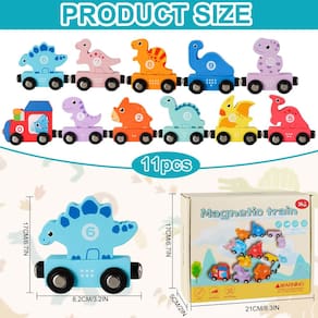 Conjunto de trem de madeira Brinquedos de trem de dinossauro — Brinquedos de trem para crianças pequenas, brinquedos magnéticos para combinar trens e aprender números ColorToys, brinquedo educacional Montessori Toys Fine Motor Skill — Conjunto atualizado de trem magnético de dinossauro: nossos conjuntos de brinquedos de trem de madeira incluem um motor de trem e dez vagões de dinossauros que vêm com impressões em frente e verso dos números 1 a 10. O mais novo design com conexões magnéticas oferece uma jogabilidade aprimorada. Novos jogos de combinação permitem que as crianças aprendam números, formas e cores e promovem a imaginação, as habilidades cognitivas e as habilidades de resolução de problemas. Opções de jogabilidade versáteis: os brinquedos de dinossauro recém-projetados apresentam conectores de encaixe que permitem que as crianças joguem jogos de combinação. Em cada lado do vagão de trem de dinossauros, há algarismos arábicos e pontos de contagem, ajudando as crianças a aprender dígitos e matemática precoce. Ao combinar dinossauros com chassis de trem com cores e palavras correspondentes, cada vagão é conectado por ímãs, aprimorando as habilidades táteis e espaciais das crianças. As crianças desenvolvem habilidades de compreensão e raciocínio. Seguro e protegido: nosso conjunto de trem de madeira é durável e seguro, feito de material de madeira maciça, tintas à base de água, bordas arredondadas e reforçado com parafusos para evitar que os pinos caiam. Ao contrário dos trens de gancho tradicionais, nossos ímãs são mais seguros e protegidos; o conjunto de trens tem uma superfície polida e bordas lisas para evitar que as peças se soltem ou se soltem; as crianças podem brincar por horas intermináveis de diversão segura e robusta - Brinquedos didáticos Montessori para crianças de 1 ano: o brinquedo infantil de madeira oferece horas de entretenimento enquanto promove habilidades essenciais, como coordenação olho-mão, habilidades motoras finas, reconhecimento de cores e números e concentração. Inspire a imaginação de seu filho, projetado para estimular a curiosidade e a criatividade brincando; com baixa resistência ao deslizamento, as crianças podem explorar e se divertir enquanto desenvolvem importantes habilidades cognitivas. Presentes pré-escolares exclusivos para crianças pequenas: o conjunto de brinquedos de dinossauro de madeira para crianças de 2 a 4 anos é a opção ideal de presente para aniversários, Dia de Ação de Graças, Natal, Ano Novo e qualquer outra ocasião. Os presentes para meninas e meninos de 2, 3 a 4 e 5 anos seriam significativos e educativos, pois não apenas ajudam a desenvolver as habilidades cognitivas das crianças, mas também promovem relacionamentos entre pais e filhos.