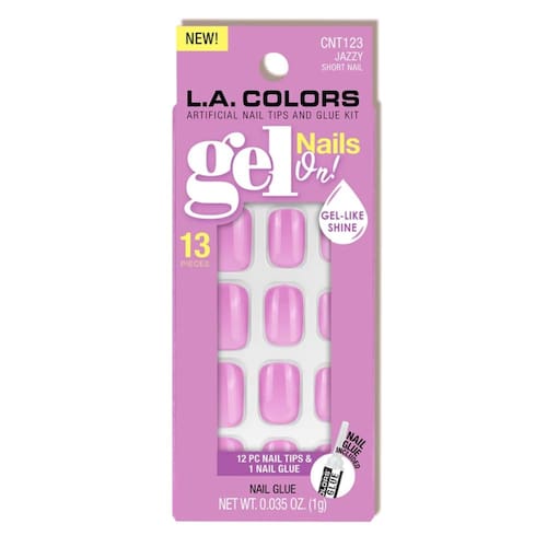 Obtenha unhas, pois você acabou de sair do salão em segundos! Obtenha unhas perfeitas e sem complicações graças ao conjunto de unhas Gel Press On Jazzy L.A Colors, com o qual você pode combinar suas cores e tonalidades favoritas. Neste conjunto você encontrará 12 unhas curtas, confortáveis e leves que têm um elegante formato quadrado de uma unha de gel, sua borda inferior é curva para obter um ajuste perfeito em suas cutículas e obter uma aparência natural, também é fácil de usar: Etapa 1: Limpe sua unha, ela deve estar seca. Etapa 2: Selecione um tamanho de gel para unhas que combine com sua unha\ nEtapa 3: Coloque uma gota de cola na unha e uma gota de cola embaixo da ponta da unha. Etapa 4: Alinhe a ponta da unha com a unha natural, pressione e segure firmemente por 15 a 20 segundos.* Para remover: removedor de unhas à base de acetona\ nCaracterísticas:\ nMarca: L.A Colors\ nColeção: Gel nails on! \ nModelo: Jazzy (roxo)\ nEmbalagem: 1g\ NInclui: 12 pregos e 1 cola. Livre de crueldade