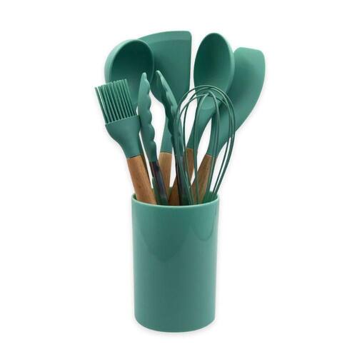 - Material: Silicone com cabos de madeira