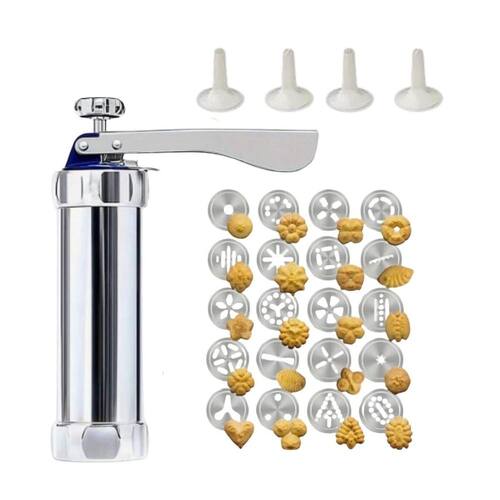 Conjunto de utensílios para cookies com 20 formas e 4 bicos, permitindo uma grande variedade de formatos. Material: Aço Inox/Alumínio.Luz indicadora de funcionamento