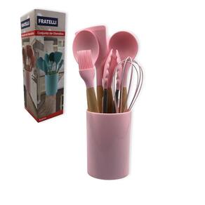 Conjunto de utensílios silicone 8 peças praticidade e beleza Cor: rosa Conjunto de utensílios silicone 8 peças praticidade e beleza Você já se sentiu frustrado ao usar utensílios que arranham suas panelas ou que não suportam altas temperaturas Isso pode tornar o preparo das suas receitas um verdadeiro desafio, além de prejudicar seus utensílios e a segurança na cozinha. Com o conjunto de utensílios silicone 8 peças, você transforma sua experiência na cozinha feitos de silicone de alta qualidade com cabos de madeira, esses utensílios são resistentes e seguros, permitindo que você cozinhe com tranquilidade. Eles protegem suas panelas, são leves e fáceis de manusear, e ainda não absorvem odores ou sabores, garantindo que suas receitas fiquem sempre perfeitas. Benefícios - protege suas panelas, evitando arranhões - segurança ao cozinhar, reduzindo riscos de queimaduras - leveza e facilidade de manuseio - fácil de lavar e não retém aromas Especificações técnicas - material: silicone com cabos de madeira - dimensões aproximadas: concha: 31cm x 7cm colher: 31cm x 6cm espátula: 31cm x 8cm espátula de confeiteiro: 31cm x 5cm pegador: 23cm x 4cm fouet: 25cm x 7cm pincel: 26cm x 4cm - peso: 590g aprox. - cores disponíveis: verde escuro, verde claro, preto ou rosa Não deixe a praticidade e a beleza de lado na sua cozinha adquira agora mesmo o conjunto de utensílios silicone 8 peças e leve suas receitas a um novo nível Informações importantes sobre a compra - com de fábrica Marca: Não Informado Ean: 7893199942915