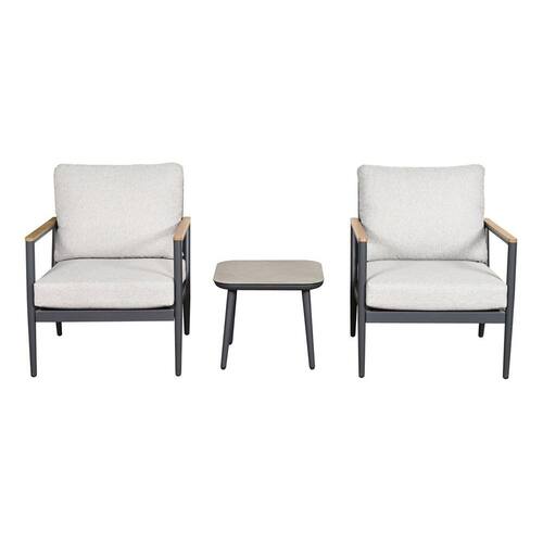 Transforme sua varanda ou espaco ao ar livre em um refugio aconchegante com o Conjunto de Varanda de Aluminio Barcelona 3 Pecas da Just Home Collection. Este conjunto de moveis de exterior, composto por duas poltronas e uma mesa, e perfeito para acomodar duas pessoas confortavelmente. Projetado com um estilo vintage moderno, este conjunto traz uma sensacao de elegancia e sofisticacao ao seu espaco, enquanto a cor preta e bege se adequa facilmente a qualquer decoracao existente.