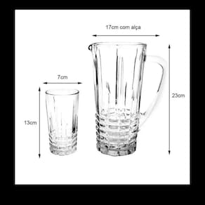 Especificações: - 1 Jarra De Vidro 1 Litro - 6 Copos De Vidro 270ml