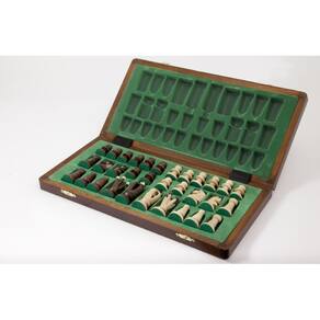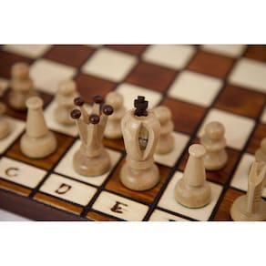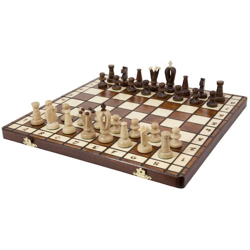 Este conjunto de xadrez muito bonito e prático de 14,2"x14,2" x 1,6" é o conjunto de xadrez mais popular da linha Royal. As peças de xadrez têm um estilo único e são feitas de madeira de choupo e sicômoro. O tabuleiro de xadrez dobrável tem uma bandeja de inserção para guardar as peças de xadrez no interior e é forrado com feltro verde. Este conjunto de xadrez é perfeito para viagens: compacto, leve e resistente. - Este conjunto de xadrez é o conjunto de xadrez Royal 36. Ótimo presente para festas de fim de ano — O tabuleiro é feito à mão, o que lhe dá uma sensação clássica que muitos entusiastas do xadrez apreciarão; coordenadas algébricas de números e letras adornam as bordas; ele mede 14,2 “x 14,2" e o tamanho quadrado é 3,9 cm (1,5"). As medidas do tabuleiro quando fechado são: 14,2" L x 7,1" L x 1,6" H quando dobrado, o tabuleiro é mantido bem fechado com 2 fechos de latão - os xadrez feitos à mão têm a parte inferior e o peso do tabuleiro; são feitos de madeira de choupo e sicômoro; King Height 2,75", Queen Height 2". Os detalhes elegantes e intrincados de cada peça de jogo são impressionantes - Os compartimentos seguros do xadrez oferecem espaço dentro do tabuleiro para armazenar com segurança cada peça de xadrez; cada peça de xadrez é protegida individualmente em compartimentos formados dentro do tabuleiro dobrável - A estética clássica está incorporada neste conjunto de xadrez completo, feito à mão na Polônia com madeira cultivada em fazendas; seu artesanato excepcional o torna digno de ser exibido