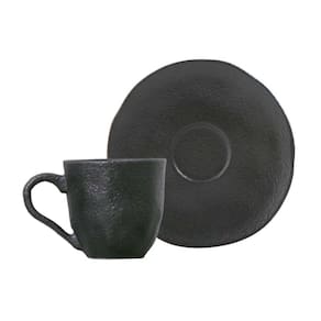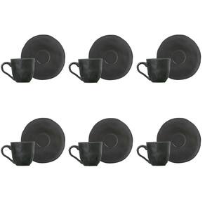 Conjunto de Xícara de Cafezinho com Pires 06 Peças Orgânico Preto Matte Porto Brasil - Incluso