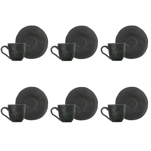 Conjunto de Xícara de Cafezinho com Pires 06 Peças Orgânico Preto Matte Porto Brasil