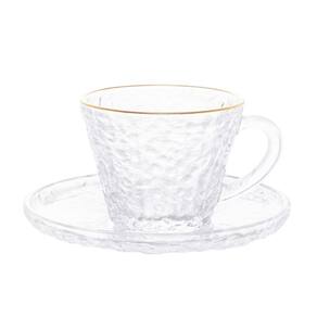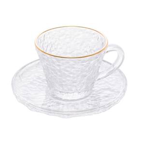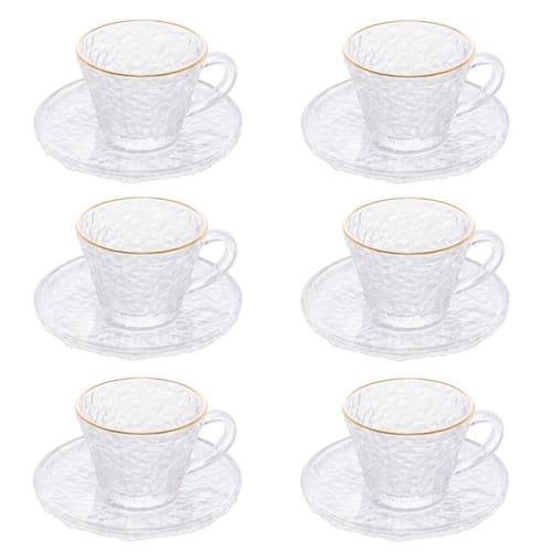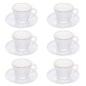 Conjunto de Xícara de Chá com Pires 06 Peças de Cristal Martelado com Fio de Ouro Petra Lyor - Incluso