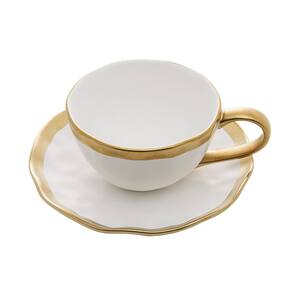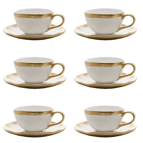 Conjunto de Xícara de Chá com Pires 06 Peças Dubai Branco e Dourado 200ml Wolff