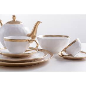 Conjunto de Xícara de Chá com Pires 06 Peças Dubai Branco e Dourado 200ml Wolff - Informações
