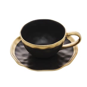 Conjunto de Xícara de Chá com Pires 06 Peças Dubai Preto e Dourado 200ml Wolff